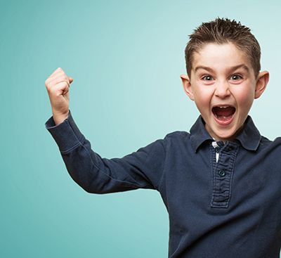 niño gritando con las manos en alto